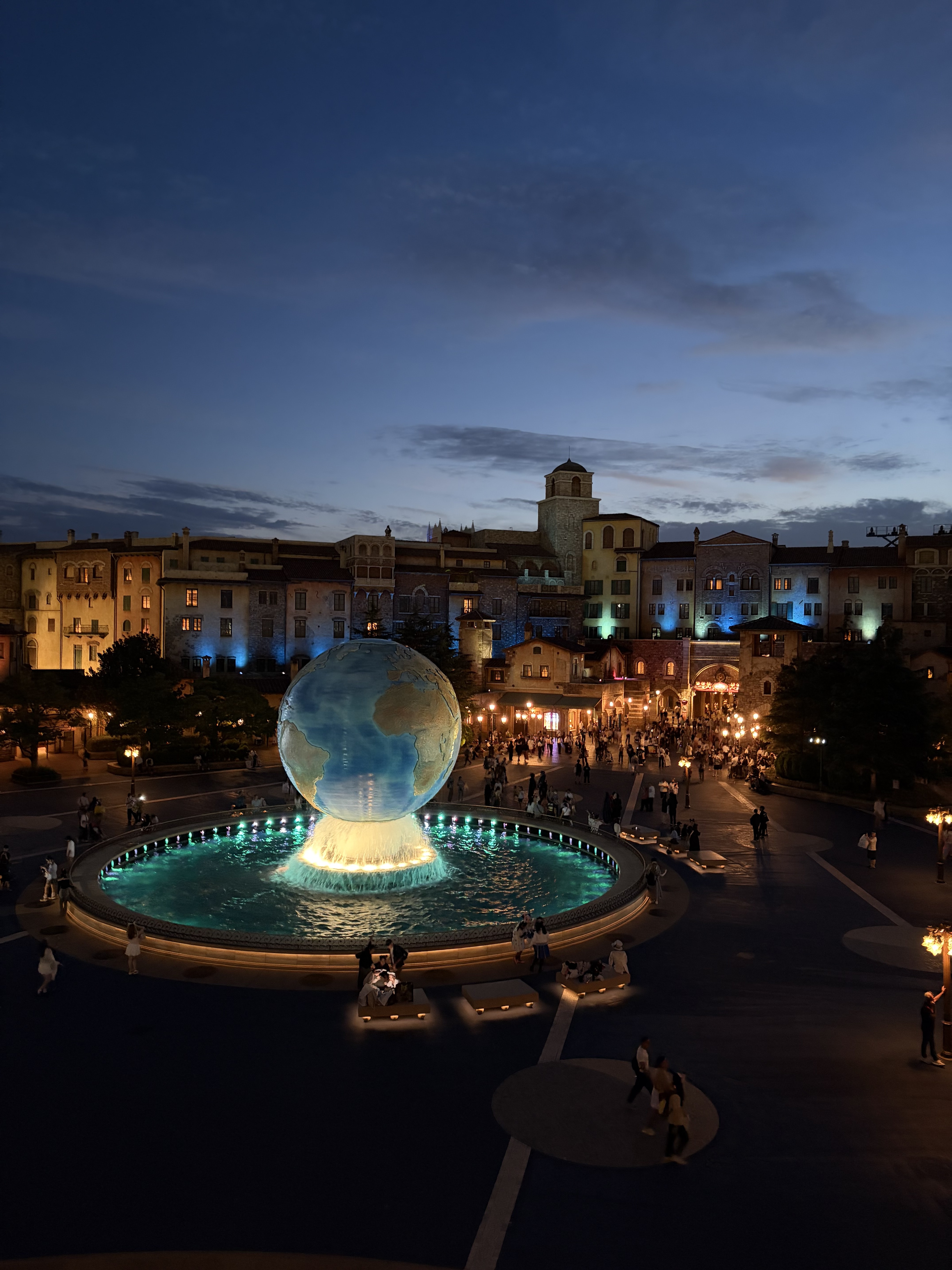 この旅行とは別ですが、購入直後の週末にTDRに寄った(インパはしてない)ので、そこで撮った夜景も置いておきます。肉眼で見るよりは青っぽくなってる印象です。このあたりはXperiaのほうが強いかも?